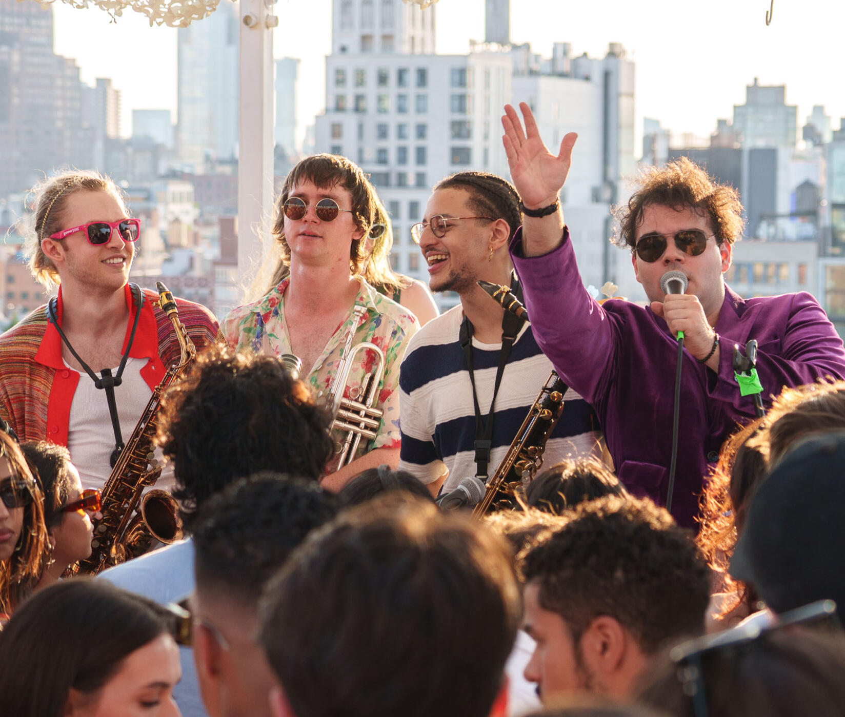 Summer Fling is a high-energy funk-rock band hailing from NYC, led by charismatic vocalist Eddie Kam. Its seven members are recently graduated jazz musicians who discovered their unique sound by transitioning from traditional standards to funk and indie-pop vibes. Summer Fling's mission? To deliver an unforgettable show while spreading heartfelt music of love, inclusivity, and electrifying horn solos.