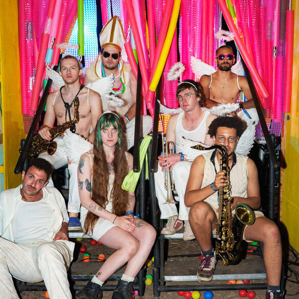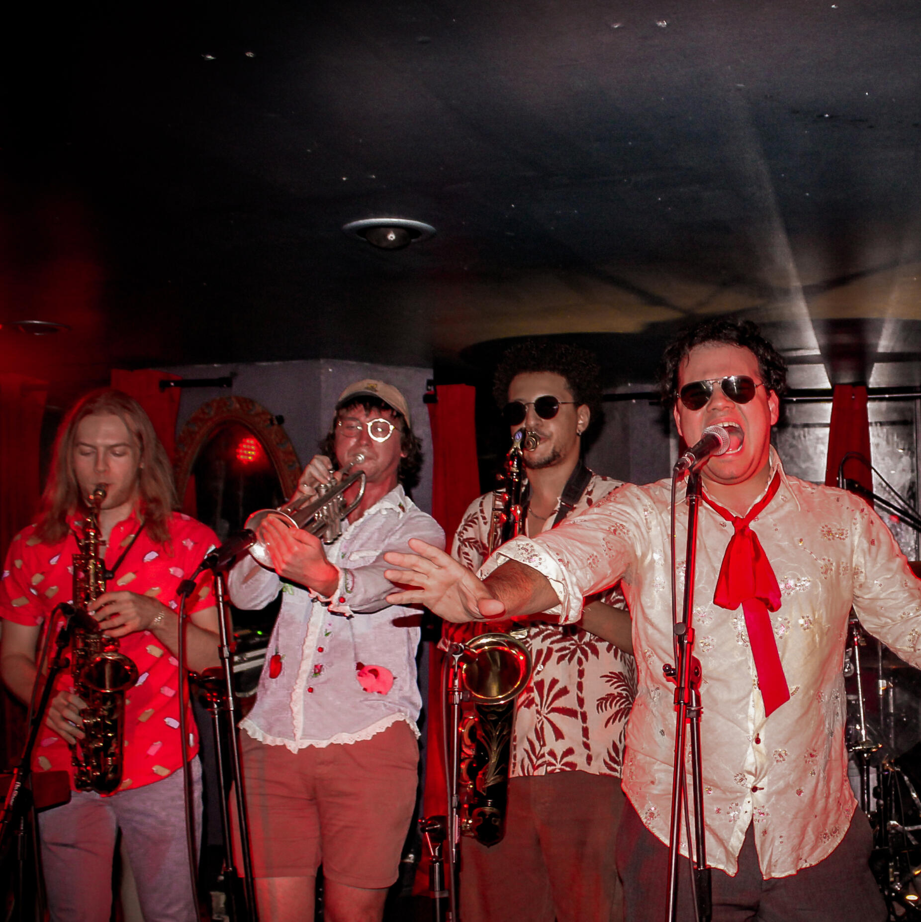 Summer Fling is a high-energy funk-rock band hailing from NYC, led by charismatic vocalist Eddie Kam. Its seven members are recently graduated jazz musicians who discovered their unique sound by transitioning from traditional standards to funk and indie-pop vibes. Summer Fling's mission? To deliver an unforgettable show while spreading heartfelt music of love, inclusivity, and electrifying horn solos.